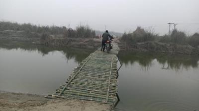 बांस के पुल पर उमड़ी भीड़, हादसे का खतरा फिर भी अर्घ्य जारी