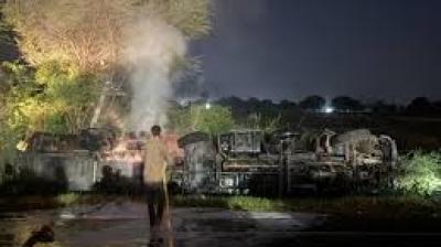 ठेके पर विवाद ने लिया उग्र रूप, वाहन तोड़े-फोड़े और आगजनी