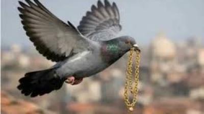 चोंच में दबाकर उड़ गया कबूतर