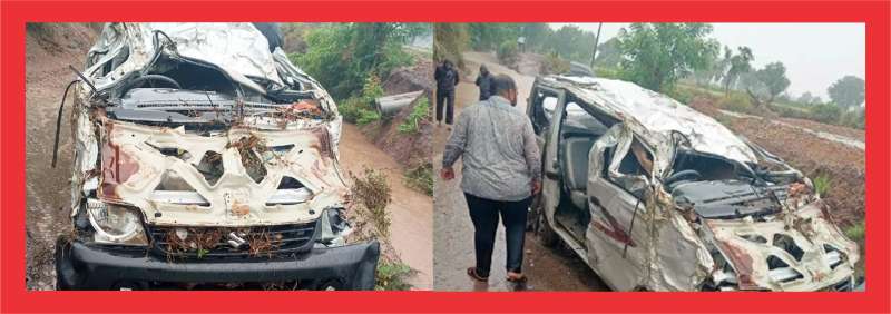 हादसे में नदी के तेज बहाव में एक इको कार बह गई। इस कार में 9 लोग सवार थे।