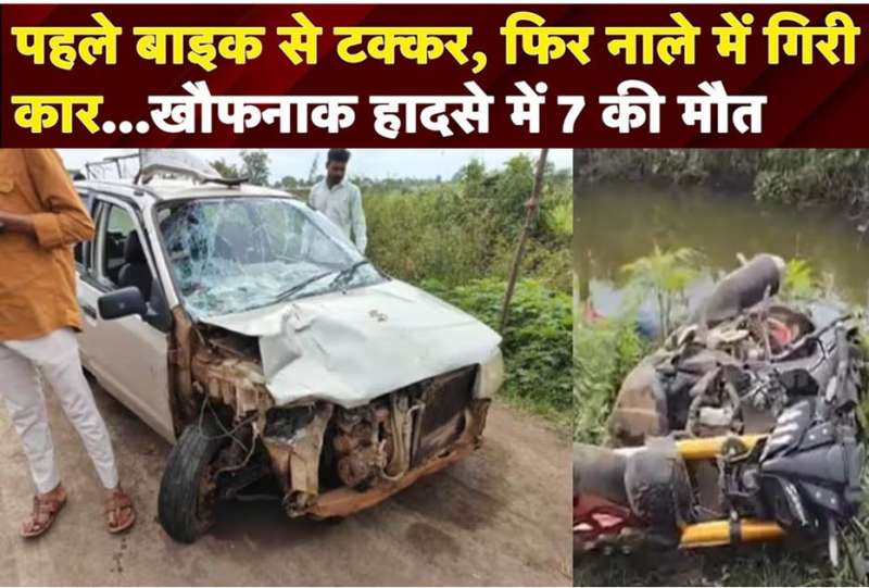 नासिक: महाराष्ट्र के नासिक जिले में एक भीषण सड़क हादसे में सात लोगों की जान चली गई। इस हादसे में दो लोग गंभीर रूप से घायल हो गए। पुलिस ने हादसे की जानकारी देते हुए बताया कि दुर्घटना वानी-दिंडोरी रोड पर दिंडोरी शहर की एक नर्सरी के पास हुई। जहां एक कार और मोटरसाइकिल की टक्कर हो गई। टक्कर इतनी जोरदार थी कि दोनों गाड़ियां सड़क के किनारे एक छोटी नहर में गिर गईं।