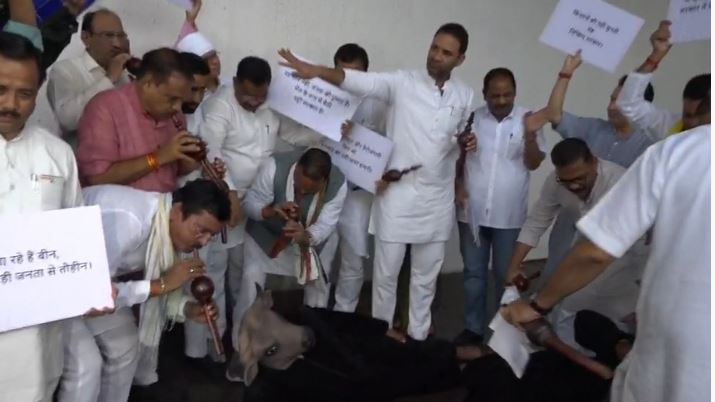 म.प्र. मानसून सत्र में कांग्रेस ने भैंस के सामने बीन बजाकर राजनीतिक प्रदर्शन किया