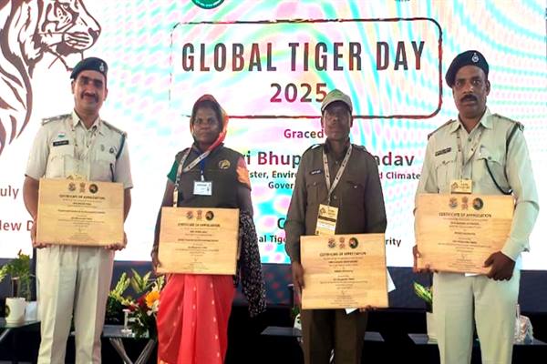 भोपाल : केन्द्रीय वन एवं पर्यावरण मंत्री भूपेन्द्र यादव ने अंतर्राष्ट्रीय बाघ दिवस के अवसर पर दिल्ली में आयोजित समारोह में उत्कृष्ट कार्य करने वाले मध्यप्रदेश टाइगर रिजर्व के वनकर्मियों को सम्मानित किया। इनमें सतपुड़ा टाइगर रिजर्व के फॉरेस्ट गार्ड राजेश पटेल, कान्हा टाइगर रिजर्व के स्थायी कर्मी सुखमान कुशरे एवं फॉरेस्ट गार्ड बसंत लाल मरावी एवं पेंच टाइगर रिजर्व की फॉरेस्ट वॉचर झुन्नी बाई शामिल हैं।