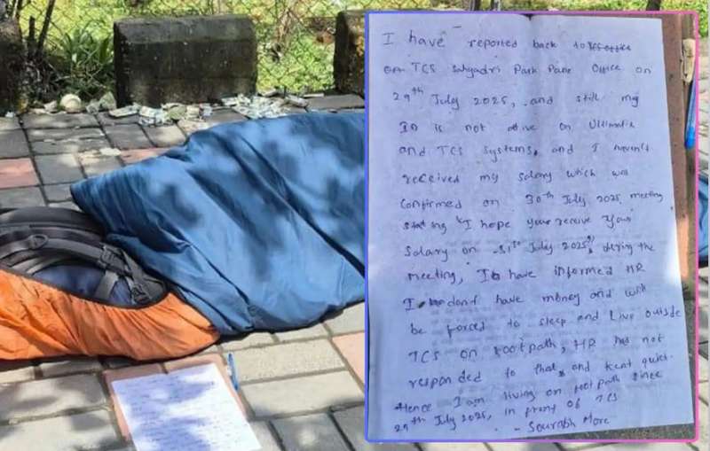 TCS ऑफिस के बाहर इंजीनियर को फुटपाथ पर देख सोशल मीडिया पर मचा हड़कंप