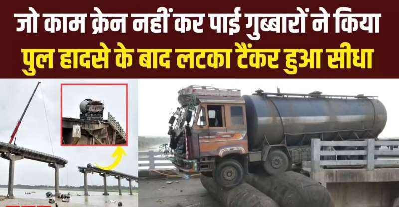 गुजरात हादसे में दिखा हाईटेक जुगाड़, नदी से टैंकर को निकालने का वीडियो देखिए
