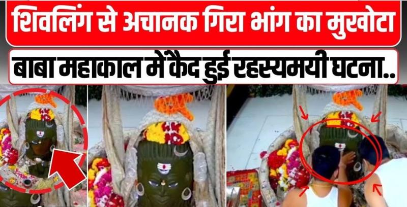 उज्जैन: विश्व प्रसिद्ध महाकालेश्वर ज्योतिर्लिंग में दो दिन पहले 18 अगस्त सोमवार को एक अनोखी घटना घटित हुई । यहां रोजाना की तरह रात्रि 8:00 बजे शिवलिंग पर श्रृंगार किया जा रहा था। शिवलिंग पर भांग से भगवान शिव का मुखौटा बनाया गया । इस दौरान बड़ी मात्रा में भांग लगाई गई। इसके तत्काल बाद आरती शुरू ही होने ही वाली थी कि भांग का श्रृंगार टूटकर नीचे गिर गया। यहां शिव के मुखौटे से नाक, होंठ और एक आंख टूट कर नीचे गिर गई। कुछ ही क्षण में मंदिर के गर्भगृह में मौजूद पंडे पुजारी ने तत्काल फिर से मुखौटा बनाया और आरती की। यह पूरी घटना मंदिर में लगे सीसीटीवी में कैद हुई जो कि वायरल हो गई।