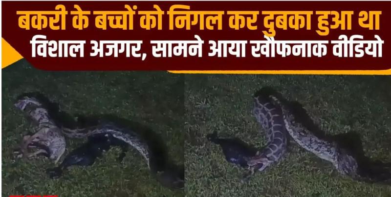 हैरतअंगेज नजारा: विशाल अजगर ने निगले बकरी के दो बच्चे, भागने से पहले उगला सब, VIDEO वायरल