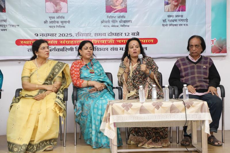 भोपाल। हिन्दी लेखिका संघ, मध्यप्रदेश द्वारा आयोजित नाट्य कार्यशाला एवं नाट्य मंचन कार्यक्रम दुष्यंत संग्रहालय सभागार में अत्यंत सफल और प्रभावशाली रहा। कार्यक्रम की अध्यक्षता सुश्री सरोज शर्मा (प्रोफेशनल कलाकार एवं कस्ट्यूम डिजाइनर, रंगमंडल भारत भवन, भोपाल) ने की। मुख्य अतिथि के रूप में नाट्य निर्देशक श्री अशोक बुलानी और विशिष्ट अतिथि नाट्य लेखिका एवं निर्देशक श्रीमती नीति श्रीवास्तव उपस्थित रहीं। संस्था की अध्यक्ष डॉ. साधना गंगराड़े ने स्वागत उद्बोधन में कहा कि – “हर व्यक्ति के भीतर एक कलाकार छिपा होता है, जिसे पहचानना, प्रोत्साहित करना और निखारना हमारा उद्देश्य है। हिन्दी लेखिका संघ की महिलाओं ने इस दिशा में सार्थक पहल की है।” बाल दिवस के उपलक्ष्य में आयोजित इस अवसर पर पर्यावरण संरक्षण और स्वच्छता के संदेश पर आधारित दो प्रभावशाली नाटकों का मंचन किया गया।•