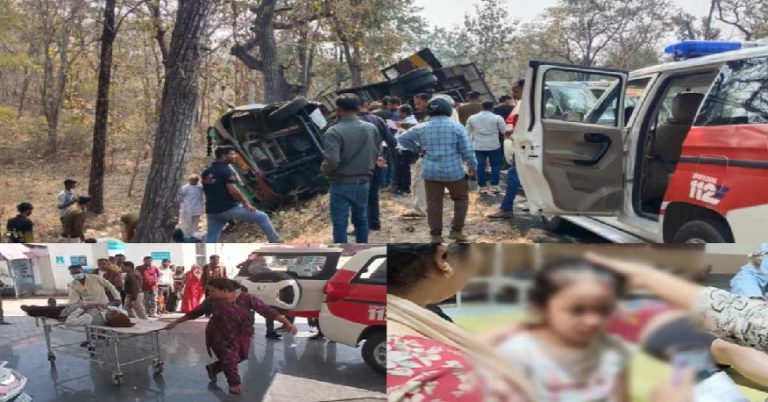 नर्मदापुरम के पिपरिया में महाकाल बस पलटी, कई घायल