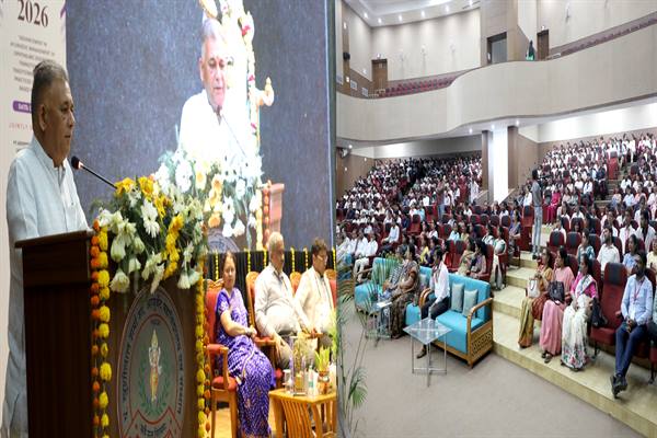 आयुष मंत्री परमार शुक्रवार को भोपाल स्थित पं. ख़ुशीलाल शर्मा शासकीय (स्वशासी) आयुर्वेद महाविद्यालय एवं संस्थान के रजत जयंती सभागार में, राष्ट्रीय आयुष मिशन मप्र एवं पं. ख़ुशीलाल शर्मा शासकीय (स्वशासी) आयुर्वेद महाविद्यालय एवं संस्थान के संयुक्त तत्वावधान में आयोजित दो दिवसीय राष्ट्रीय संगोष्ठी "नेत्रम-2026" के समापन सत्र में सहभागिता कर, संगोष्ठी की वर्तमान परिदृश्य के अनुरूप आवश्यकता, महत्ता, प्रासंगिकता एवं निरंतरता के आलोक में अपने विचार साझा कर रहे थे।