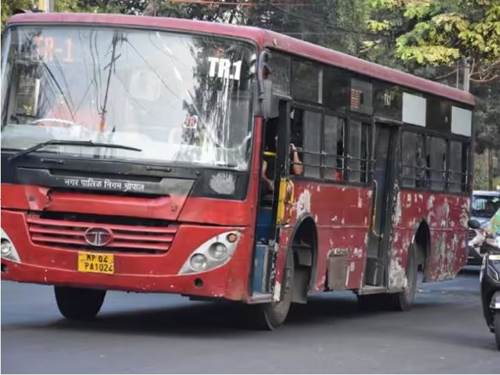 भोपाल: सड़क धंसने से मची अफरा-तफरी, बस के पहिए जमीन में समाए