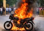 चलती बाइक में अचानक भड़की आग, जिला न्यायालय क्षेत्र में अफरा-तफरी